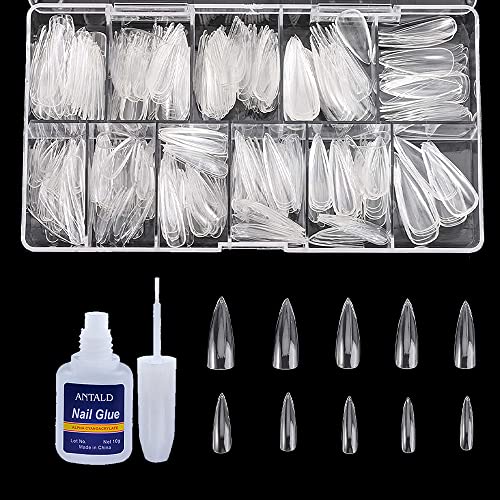 SYGA LongDrop False Nails and Glue Bottle Professional Brush On Nail Tip Glue for Press On Nails Fake Nails Long Lasting Press On Nails for Women and Girls- Transparent, 500 pieces