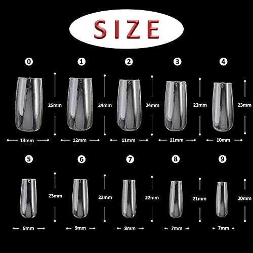 SYGA Square False Nails and Glue Bottle Professional Brush On Nail Tip Glue for Press On Nails Fake Nails Long Lasting Press On Nails for Women and Girls- Transparent, 500 pieces
