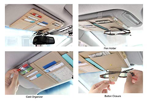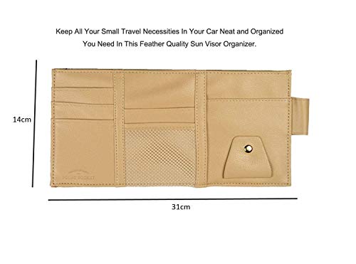 SYGA Leather Car Visor Organizer Sun Shade CD Holder Card Storage Pouch Bag Multi-Functional Organizer(Beige)
