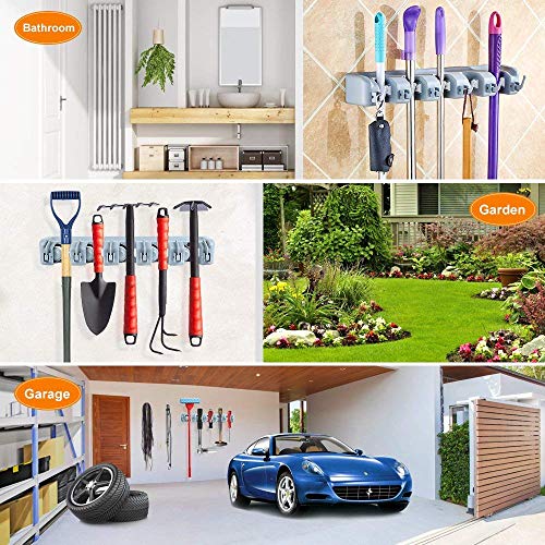 1.Versatile and Handy. Newdora Wall Mounted Mop and Broom Holder provide a solution to clean and organize your garage, garden, kitchen, laundry, offices and everywhere you want. It is strong, sturdy, long lasting and weatherproof.