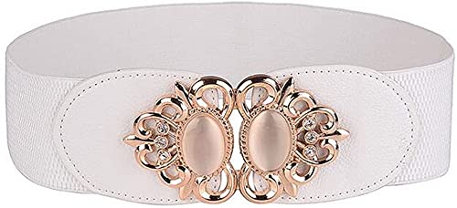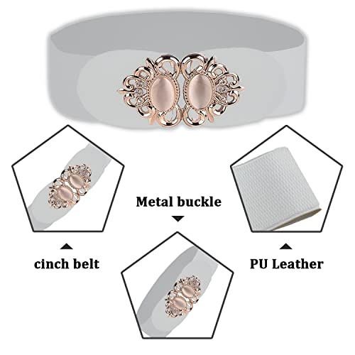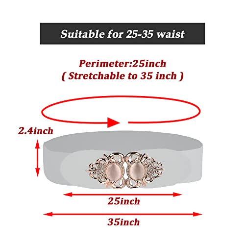 SYGA Women Cinch Belt, PU Leather Stretchy Waist Belt with Pearl Studded Metal Buckle, Retro Style, 25-35 Inch