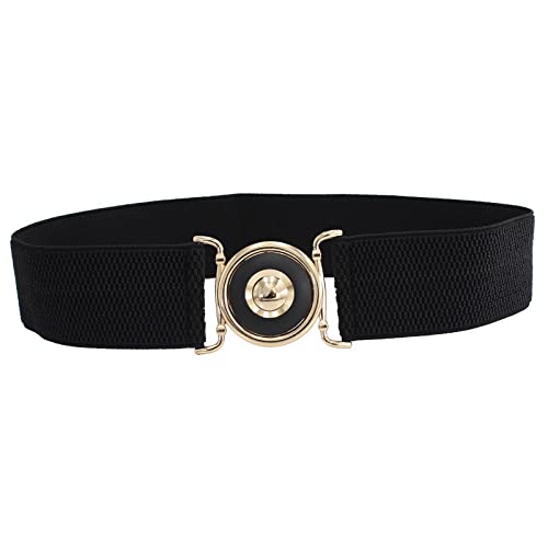 SYGA Women's Stretchy Leather PU Cinch Belt, Different Buckles, Black (Pack of 1)