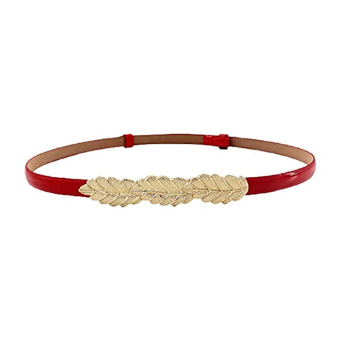 SYGA Women's Leaf Skinny Stretchy Leather Thin Belt (Pack of 1)