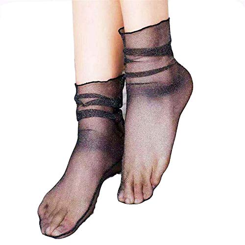 SYGA Cross Lining Dots Pattern Black Women Girl Transparent Mesh Sock Elastic Sandals Socks
