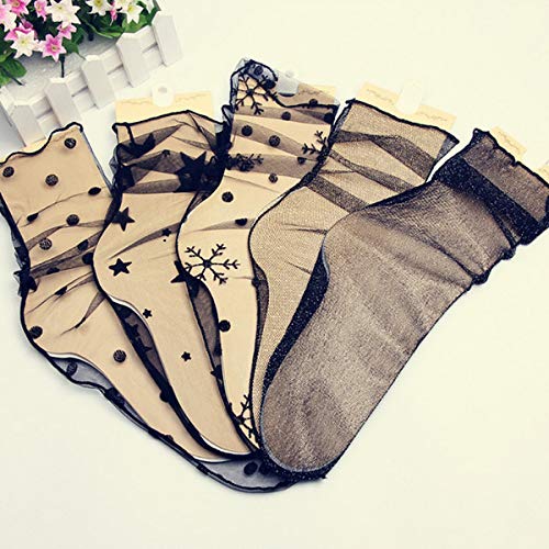 SYGA Cheks Pattern Black Women Girl Transparent Mesh Sock Elastic Sandals Socks