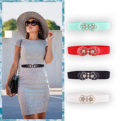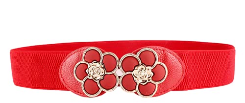 SYGA Women Cinch Belt, PU Leather Stretchy Waist Belt with Dual Flower Metal Buckle, Retro Style, 25-35 Inch
