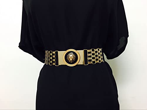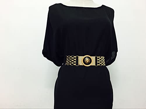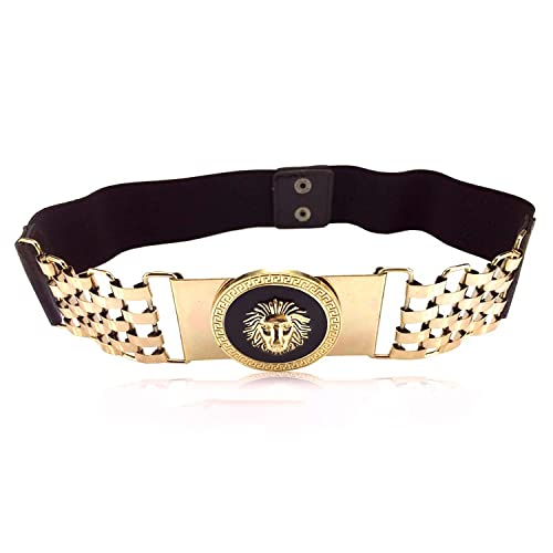 SYGA Women PU Leather Belt Stretchy Waist Belt with Multiple Designs in Metal Buckle, Black - 25-35 Inch