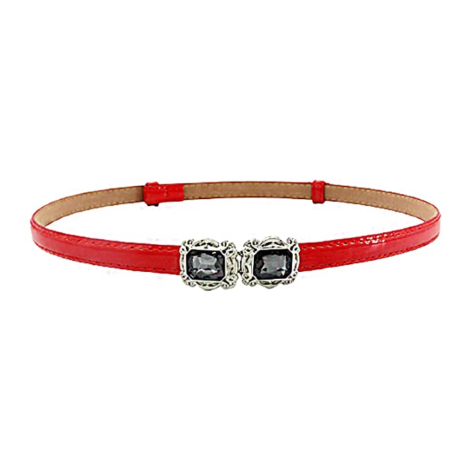 SYGA Women's Carved Stone Skinny Stretchy Leather Thin Belt (Pack of 1)
