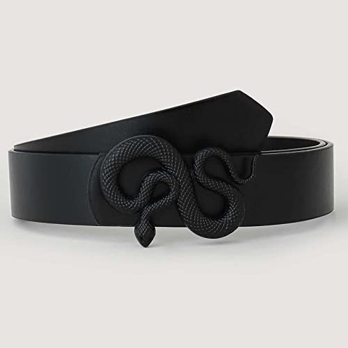 SYGA Women PU Leather Belt Stretchy Waist Belt with Multiple Designs in Metal Buckle, Black - 25-35 Inch