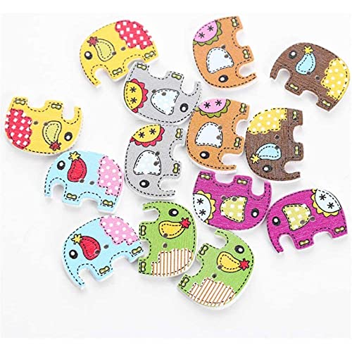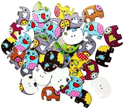 Syga 50 Pieces Elephant 2 Holes Wooden Buttons Sewing DIY Craft Scrapbooking