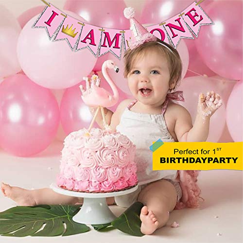 SYGA I am One Banner for Birthday Decorative Party Photo Props Banner[Silver-Pink Theme]