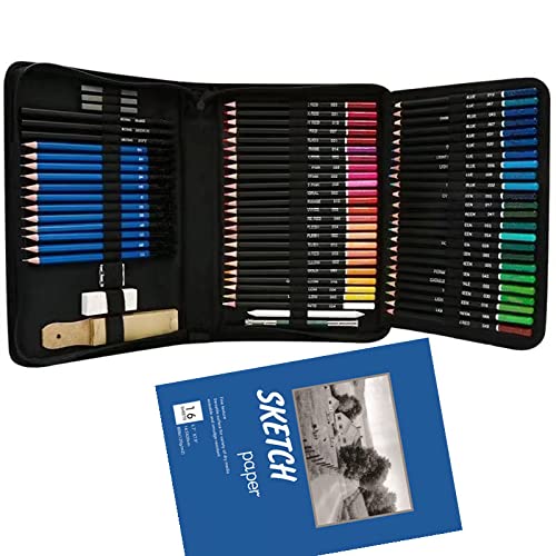 Includes 96 pre sharpened professional quality graphite pencils is an essential addition to your collection of art supplies. 12 sketching pencils, 72 color oily color lead, 3 charcoal pencils (soft, medium and hard), 3 carbon strips (soft, medium and hard), 1 solid paper pen, 1 double-ended pencil extender, 1 white eraser, 1 large sanding board, 1 double-headed metal pencil sharpener, 1 present A5 drawing present, extenderall well-organised in pencil bag made of canvas.