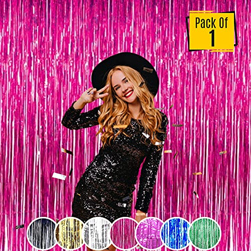 SYGA Foil Curtains Metallic Decoration Tinsel Photo Booth Backdrops Party Supplies for Birthday Wedding Christmas Bridal Shower Mehendi Celebration Bachelorette Holiday Decoration- Pink, 2 x 1 Meter