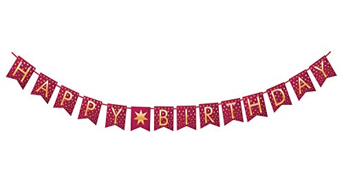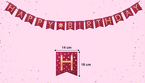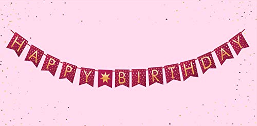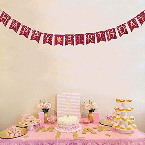 SYGA Pink Happy Birthday Banner with Star Designs Decorative Birthday Party Banner
