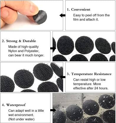 Round Coin Tape: You will get 100 pieces of black round hooks+100 pieces of black round loops self-adhesive dots tapes, each one measures 2cm in diameter, these tapes can hold all items well, they are very suitable for fastening and bonding household and office supplies