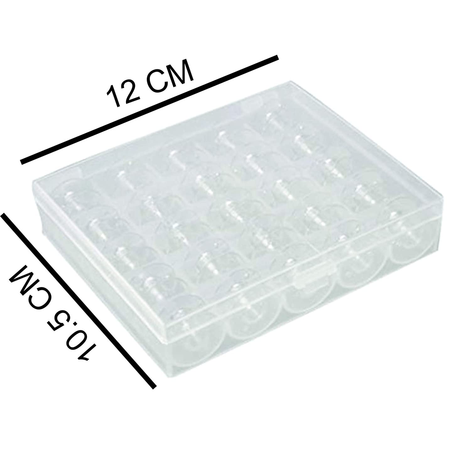 SYGA 25 White Transparent Bobbin Storage Box (25 Grid Box with Bobbins)