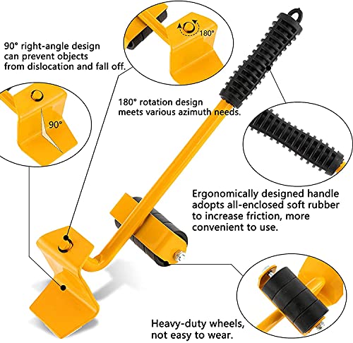 SYGA Furniture Lifter Mover Tool Set, Furniture Moving Slider Tools, Furniture Moving Roller Wheel Set for Fridge Sofa, 5Pcs - Yellow