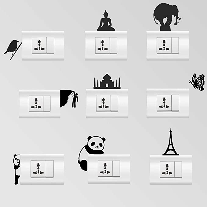Syga Beautiful PVC Vinyl Modern Art Kids Room Switch Board Stickers (Black, Standard) Set of 9