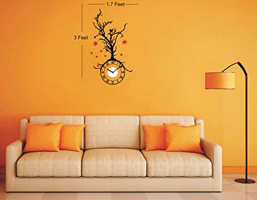 Syga PVC, Vinyl Black Tree Wall Stickers Clock_07 (Multicolour)