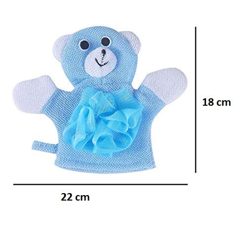 SYGA Teddy Face Cartoon Bathing Gloves Children Cartoon Bath Towel Baby Bath Gloves(Blue)