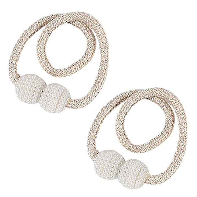 SYGA 2Pcs Magnetic Curtain Tiebacks Clip Rope Holdbacks Classy Decorative Pearl Holder Buckles for Home Hotel Window Draperies Rope Ties Office Living Bedroom Decoration- Simple Beige