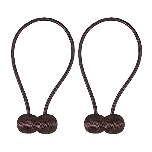 SYGA 2Pcs Magnetic Curtain Tiebacks Clip Rope Holdbacks Classy Decorative Pearl Holder Buckles for Home Hotel Window Draperies Rope Ties Office Living Bedroom Decoration- Brown