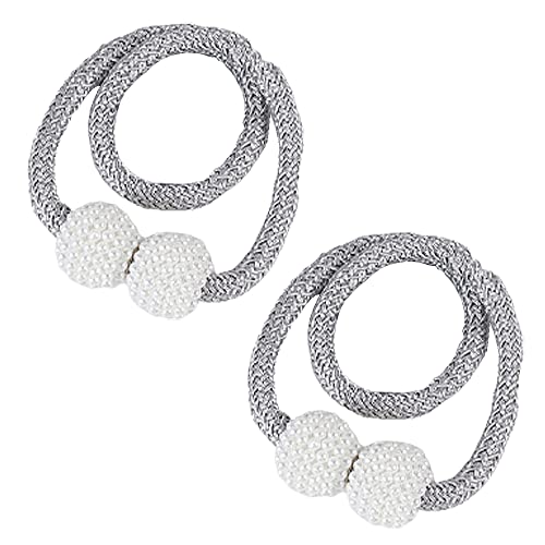 SYGA 2Pcs Magnetic Curtain Tiebacks Clip Rope Holdbacks Classy Decorative Pearl Holder Buckles for Home Hotel Window Draperies Rope Ties Office Living Bedroom Decoration- Simple Gray