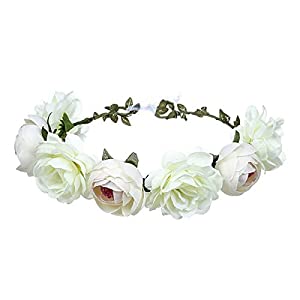 SYGA Women Rose Floral Crown Hair Wreath Leave Flower Headband Tiara with Adjustable Ribbon_Cream