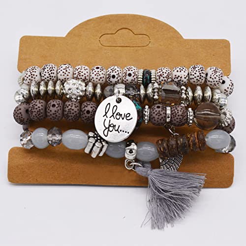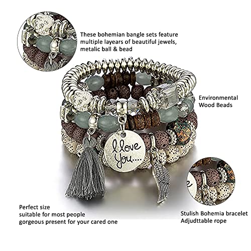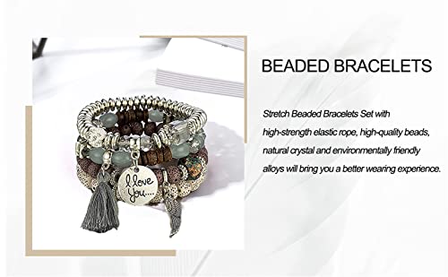 The stackable bracelets are made of alloys, tassel ornaments and colorful beads, they are nickel free, harmless and safe. Don't worry about bracelet fading after a long time, the longer the time, the better the retro effect.