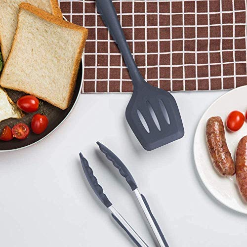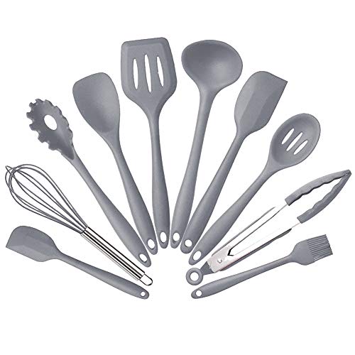 SYGA Silicone Kitchen Utensils Set, 10 Pieces Silicone Cooking & Baking Tool Sets Non-Toxic Hygienic Safety Heat Resistant (Grey)