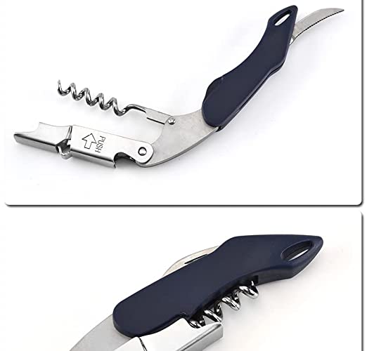 SYGA 3 in 1 Corkscrew Beer Wine Bottle Opener with Leather Cover Spring-Loaded Double Lever, Serrated Foil Cutter Barware Gear Waiter's Corkscrew of Sommeliers, Waiters, Bartenders Gift- Navy Blue
