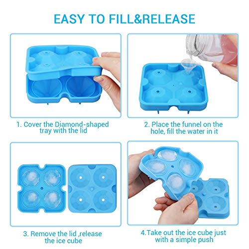 Wash ice tray by hand or in a dish washer before first use. Use dish soap to remove silicone smell if you feel it bothers you. -Made with 100% safe food grade silicone and fda approved safe use -freezer- microwave- oven- and dishwasher- safe safe temperature range from -40? to 230? -getting 4 realistically diamond-shaped ice cubes (1. 34" X 1. 89") Slowly melting and fun great fun for kids & adults -very easy to use: fill directly or with funnel(included) comes with a removable lid to make nice cubes and no odors -easy release and clean: you can take out the ice just with a simple push and clean with water easily -make your wiskey cool perfect to chill cocktails whiskey tequila vodka or other drinks with less dilution -also perfect for meal prep baby food portion control freezing sauces or making fun infused ice cubes - -note: -in order to make the shape of the diamond ice cubes look perfect please press the edge of the ice tray to let excess water out - -package includes: 1 x ice cube tray 1 x funnels