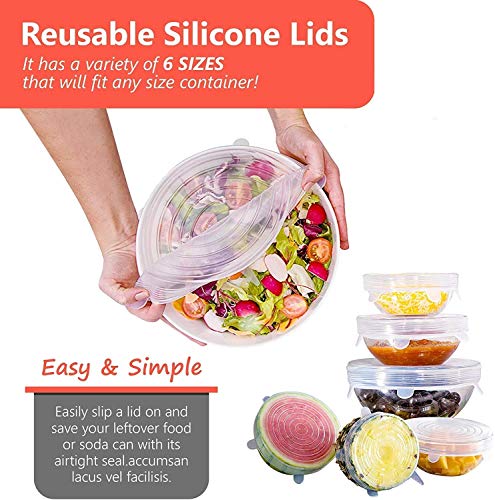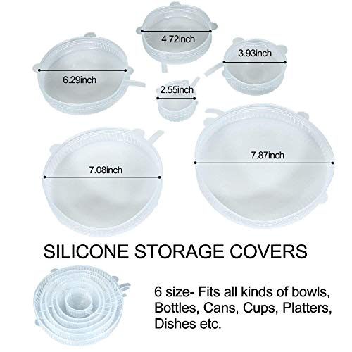 About this item Makes Your Busy Life Easier: Time has arrived to forget cling / saran wrap, aluminum foil, baggies, and lid hunting. Our Silicone lids are stackable and see through so storing and finding food has never been this easyVersatile: 6 sizes will fit covers containers such as a...
