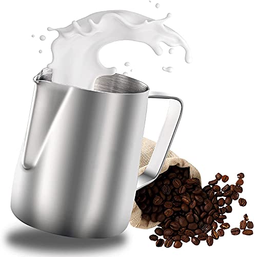 About this item Wide Range Of Uses: The milk frothing pitcher can help you froth or steam milk for lattes; measure liquids; serve milk or cream. This stainless steel milk frothing pitcher is perfect for water, juices, batter mixes, smoothies, and other pour-able item whether hot or coldProfessional Quality: The...
