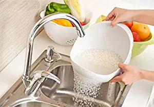 SYGA Rice Washer and Keeper, Deep Bowl with Side Colanders and Handle, Easy for Rice Fruits Vegetable Washing and Holding (White)