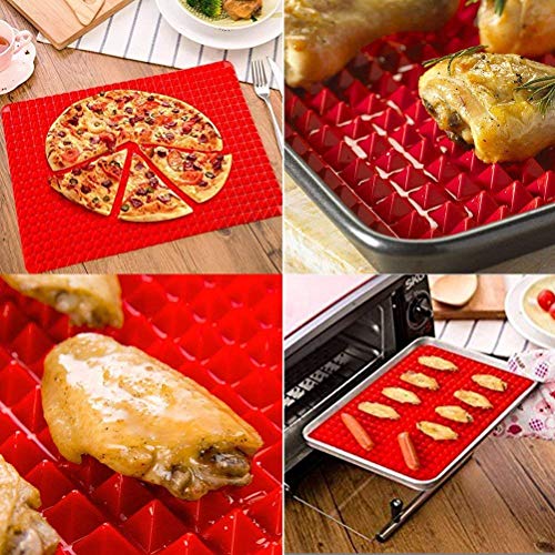 Specification: size: 39. 5 X 27. 5 Cm material: food grade silicone color: red quantity: 1pcs temperature range: -60°c to 260°c features: Made from quality food-grade safe and non-toxic certified and attested by the fda it is safe to have direct contact with food. Innovative raised pyramid design for healthy cooking and as a trivet or drying rack upside down for evenly cooked bread cookies and pastries. Not-stick non-smelling durable impermeable easy to use and easy to clean up. Can be used safely in ovens microwaves refrigerators freezers and dishwashers. Can be folded or rolled up to save storage space.