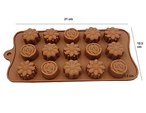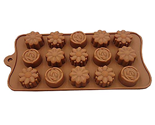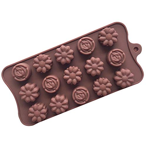 SYGA Silicone Rose & Candy Flowers Shape Chocolate Jelly Candy Mold, Cake Baking Mold, 15-Cavity Bakeware Mould, Brown