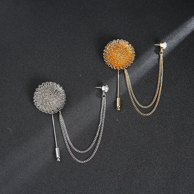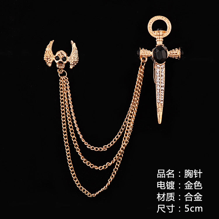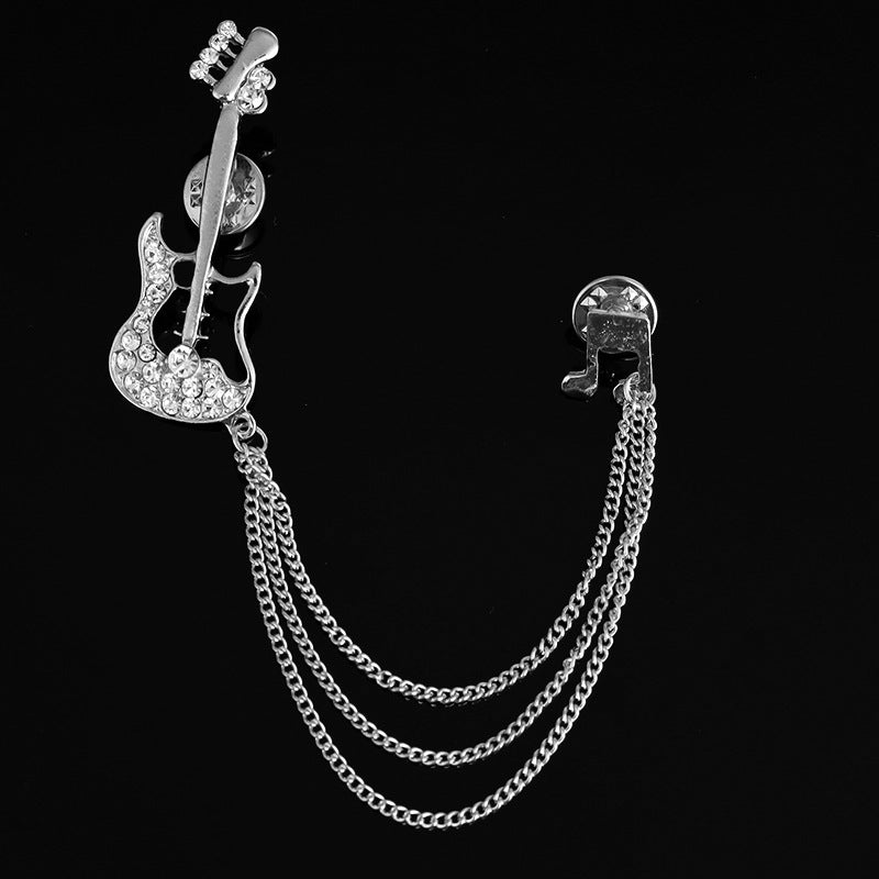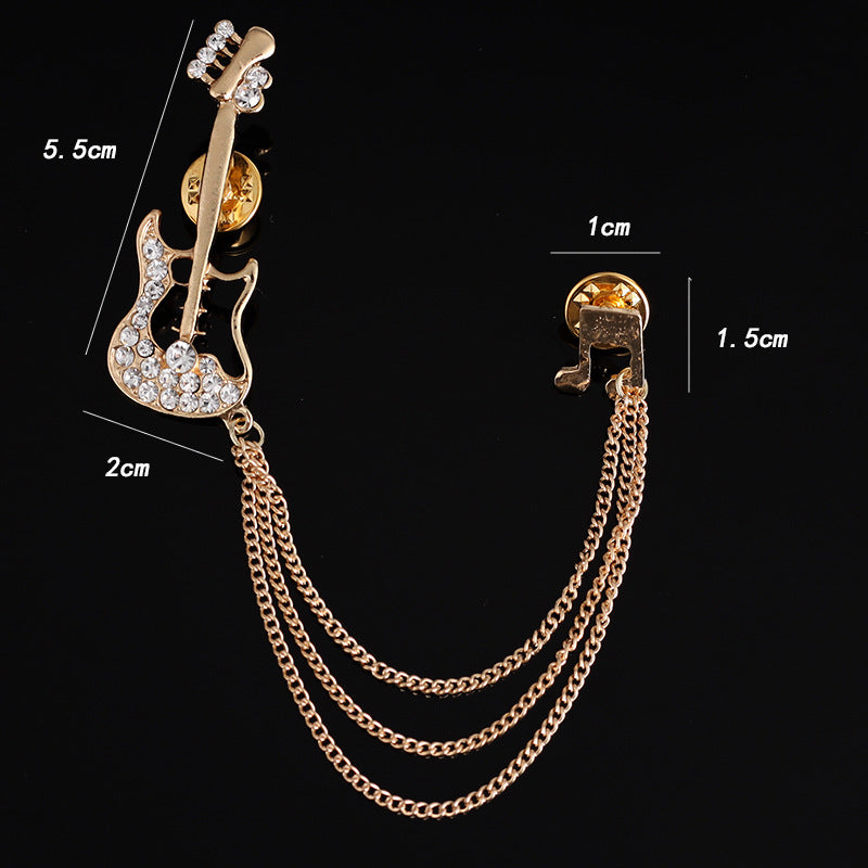 Men's personalized suit with tassel badge, guitar, musical instrument, chain brooch, twist ball brooch accessories