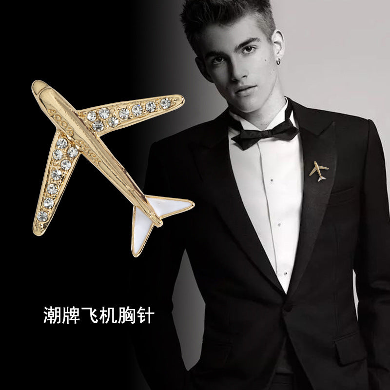 New fashionable men's airplane brooch, collar pin, versatile high-end corsage, personalized suit jacket accessories wholesale
