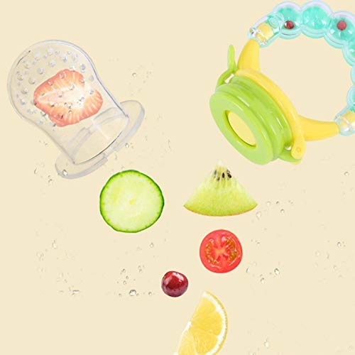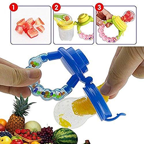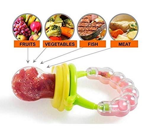 FUNCTIONAL DESIGN: Soft silicone surface with baby food strainer makes it easy to chew, suck and clean.It can store fresh or frozen fruits, vegetables, breast milk, or even medicine, which can helps to relieve teething pain. Also our multifunctional baby’s fruit nibbler can be used as a baby teething pacifier and massaging for gums.This will allow you to remove soothe baby's teething discomfort and solve many other oral problems in small childs.