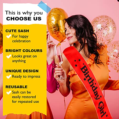 SYGA Birthday Queen Sash Birthday Party Sash Shiny Glitter for Women Girls Princess Elegant Party Decoration Accessory Supplies Gifts for Girl Women with Fun Party Queen Lettering - Red