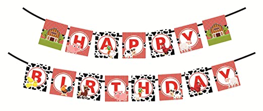 SYGA Happy Birthday Banner with Pet Animals Farm House Decorative Party Photo Props Banner