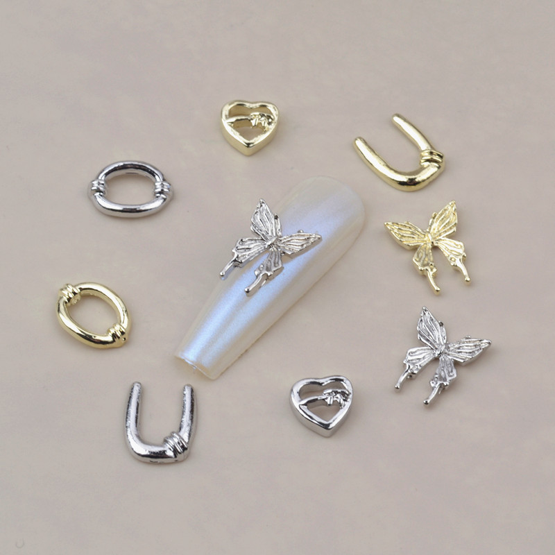 Retro European style old alloy liquid butterfly jewelry hollow metal palace fairy peach heart photo frame manicure jewelry