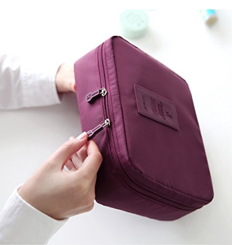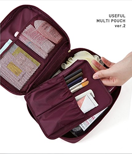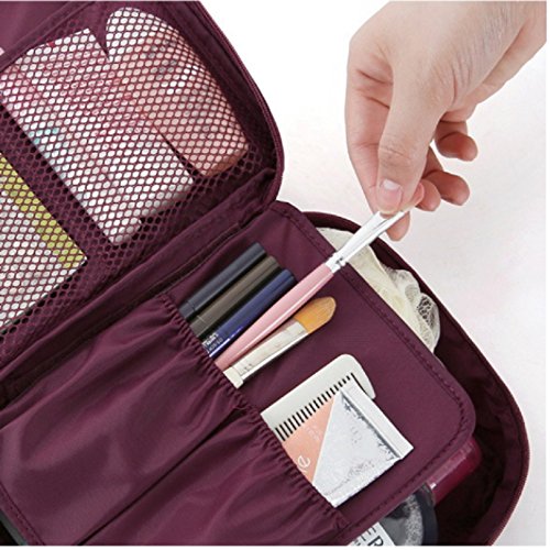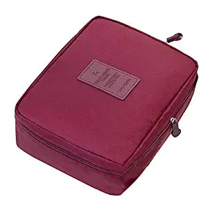 SYGA Travel Cosmetic Bag Plain Multifunction Portable Bag Cosmetic Makeup Pouch Case_WineRed