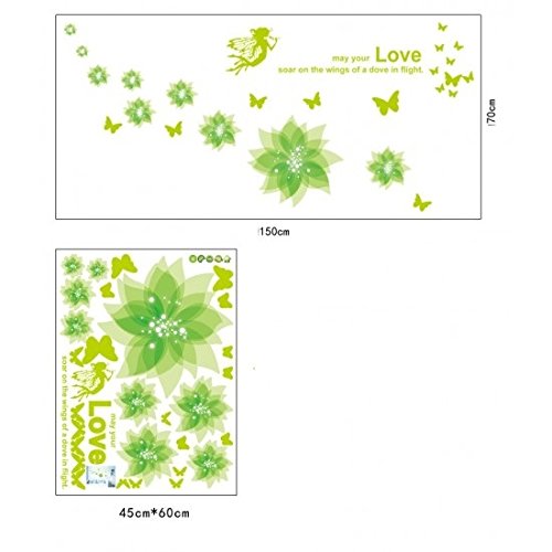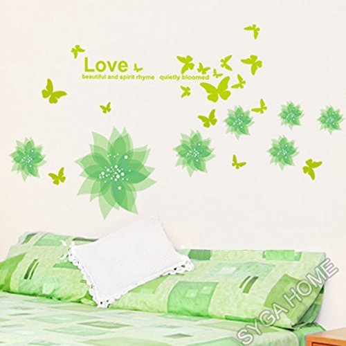 SYGA PVC Vinyl Wall Stickers for Living Room Self Adhesive Stickers, Green Lotuses with Birds Quote