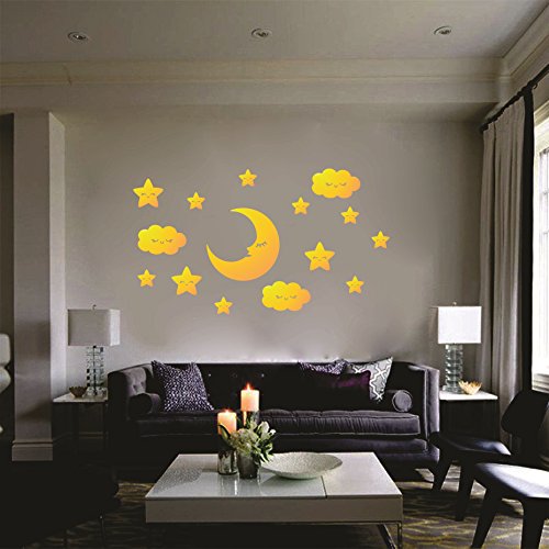 SYGA Star Moon with Eye Acrylic Wall Sticker (Golden)
