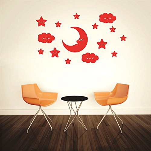 SYGA Star Moon with Eye Acrylic Wall Sticker (Red)