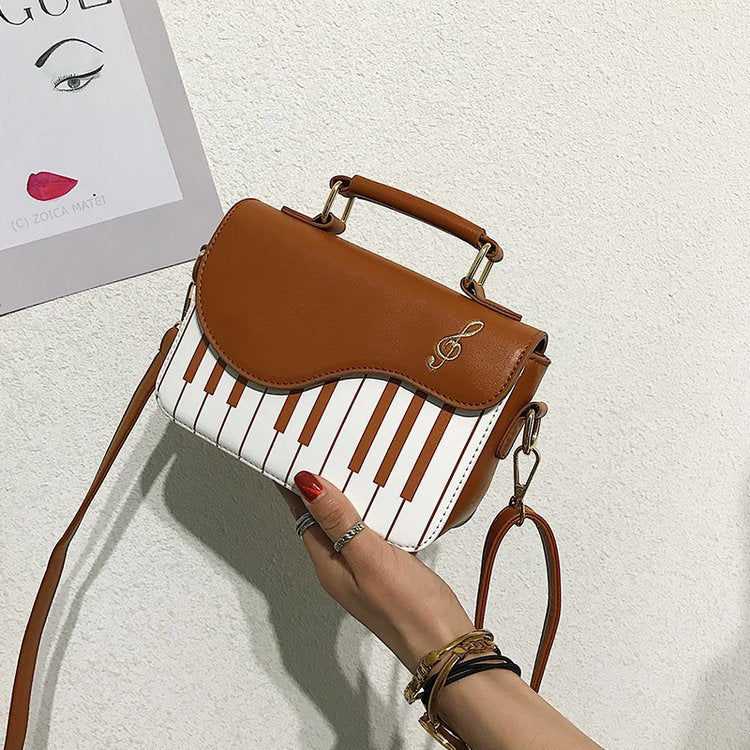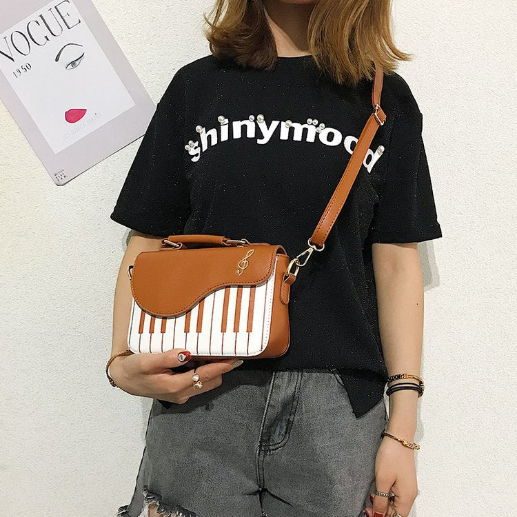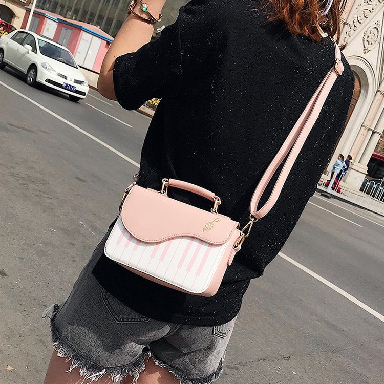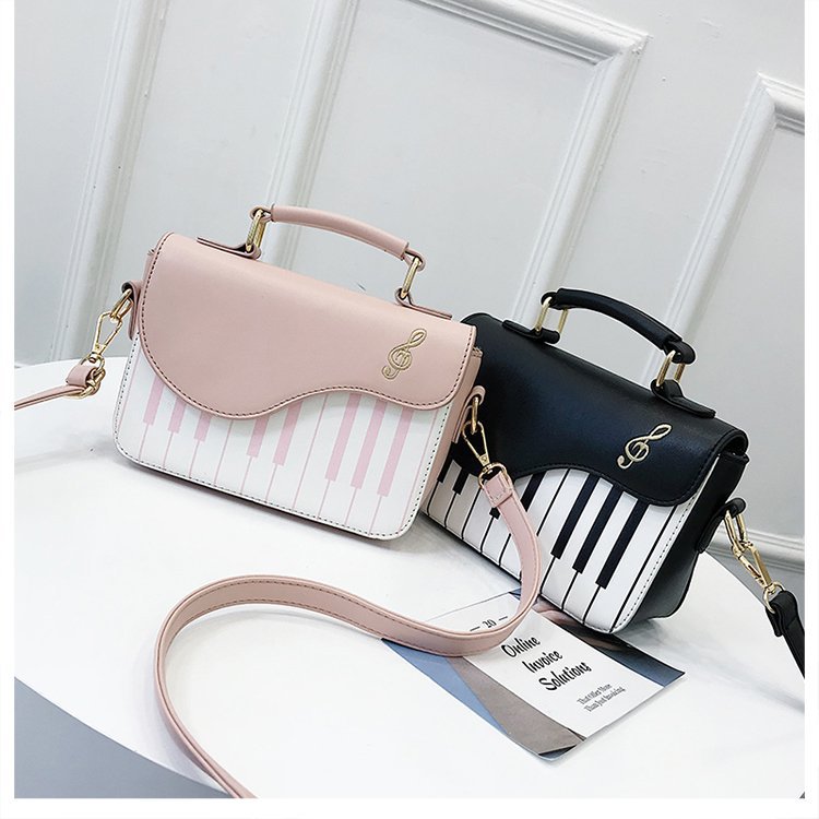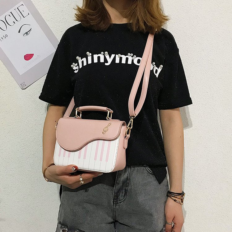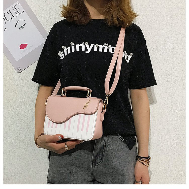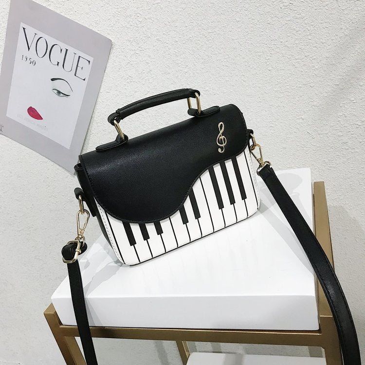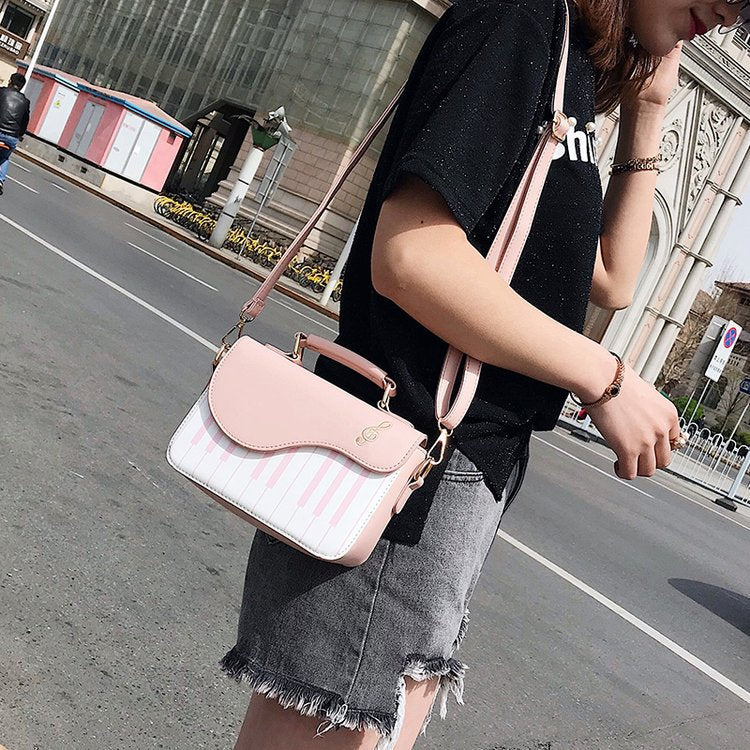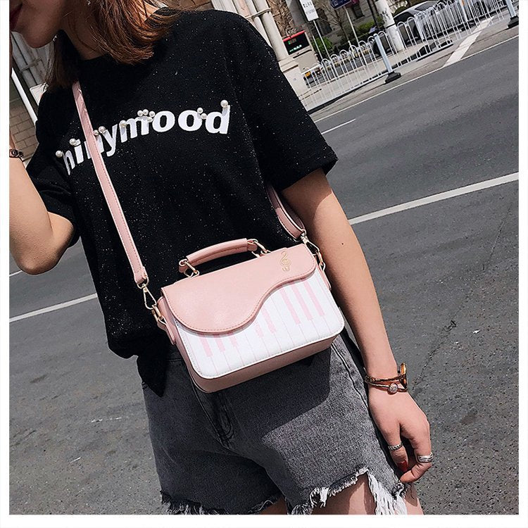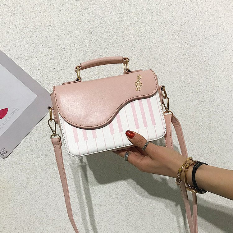 2022 Spring and Summer Fashion Contrast Color Embroidery Small Square Bag Girl Sweet Personality Piano Note Small Shoulder Bag Handheld Women's Bag