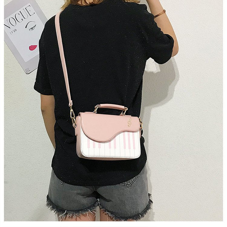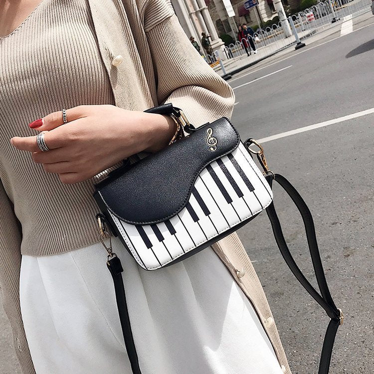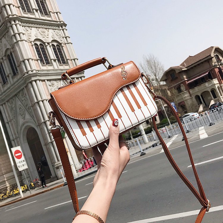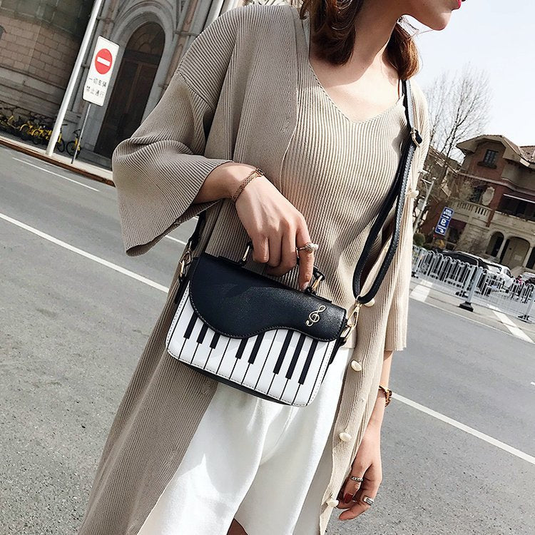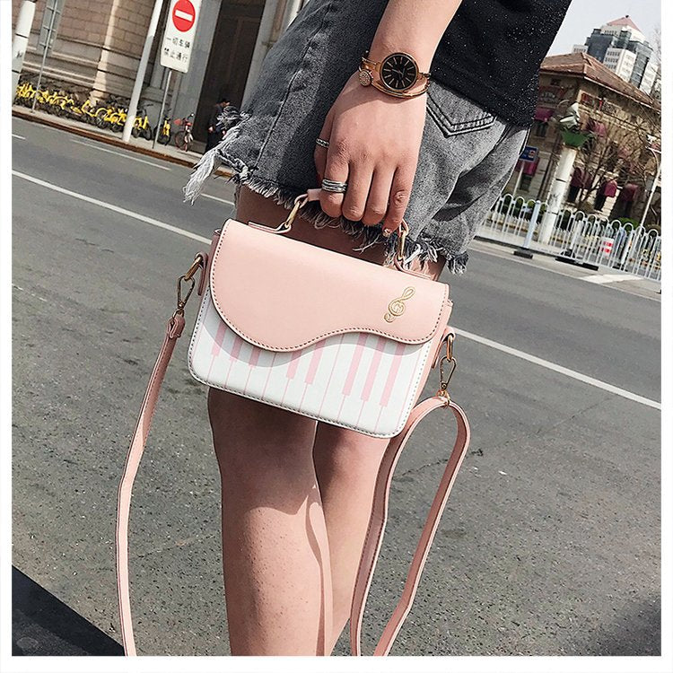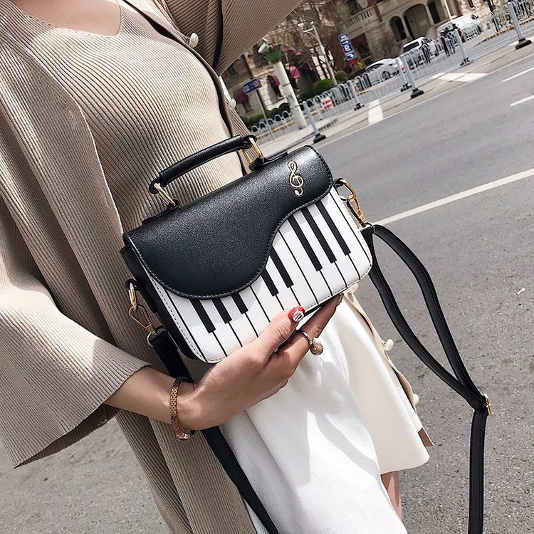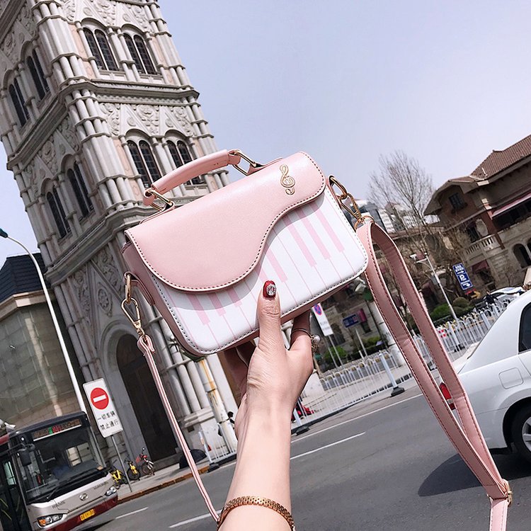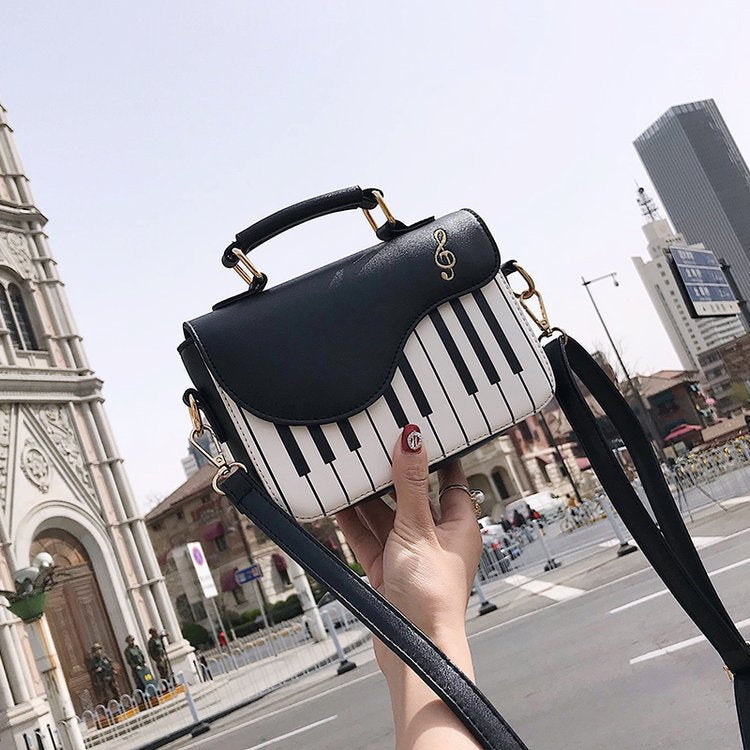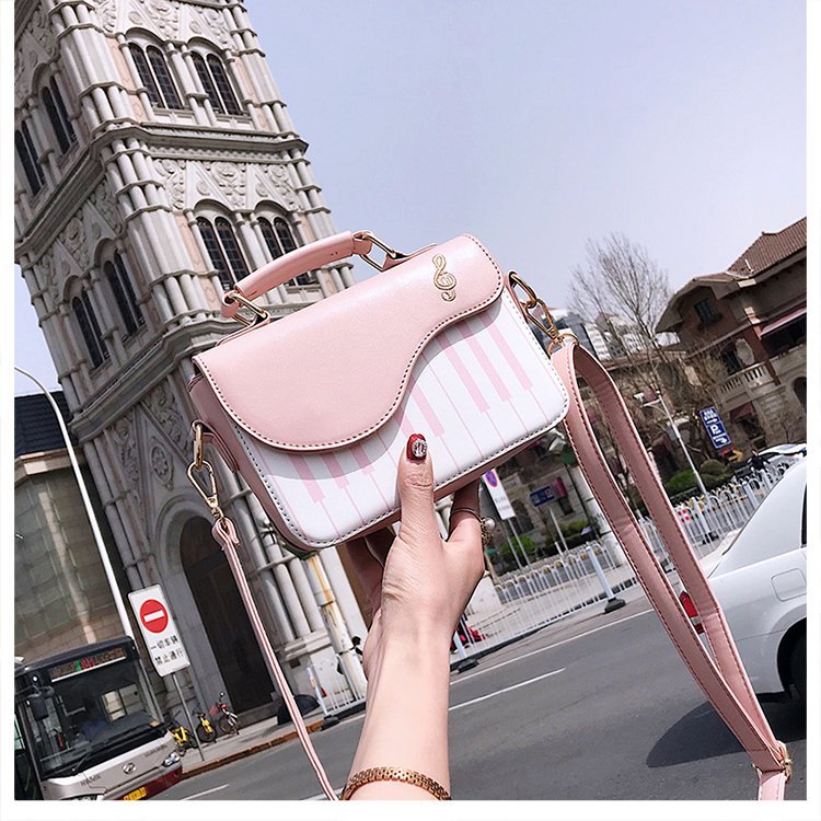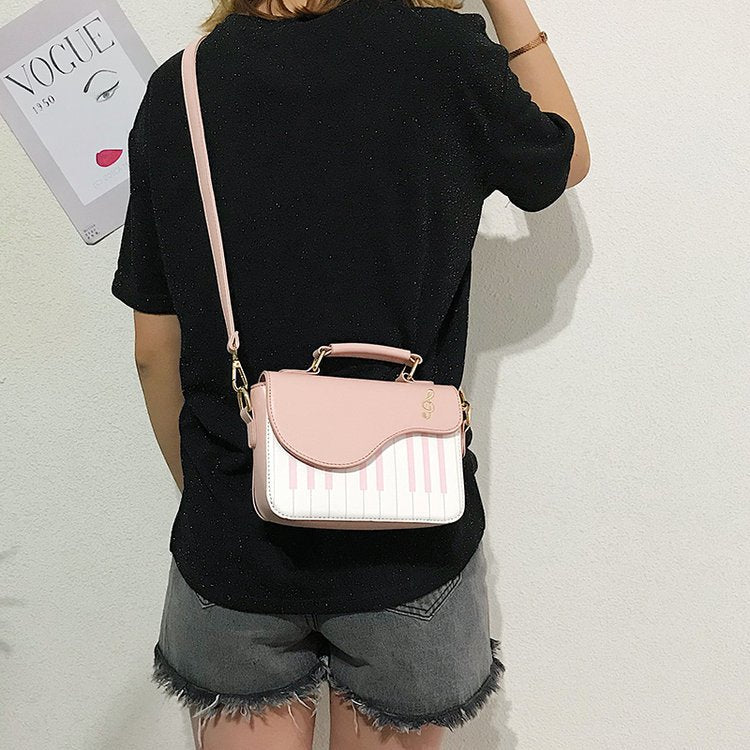 2022 Spring and Summer Fashion Contrast Color Embroidery Small Square Bag Girl Sweet Personality Piano Note Small Shoulder Bag Handheld Women's Bag