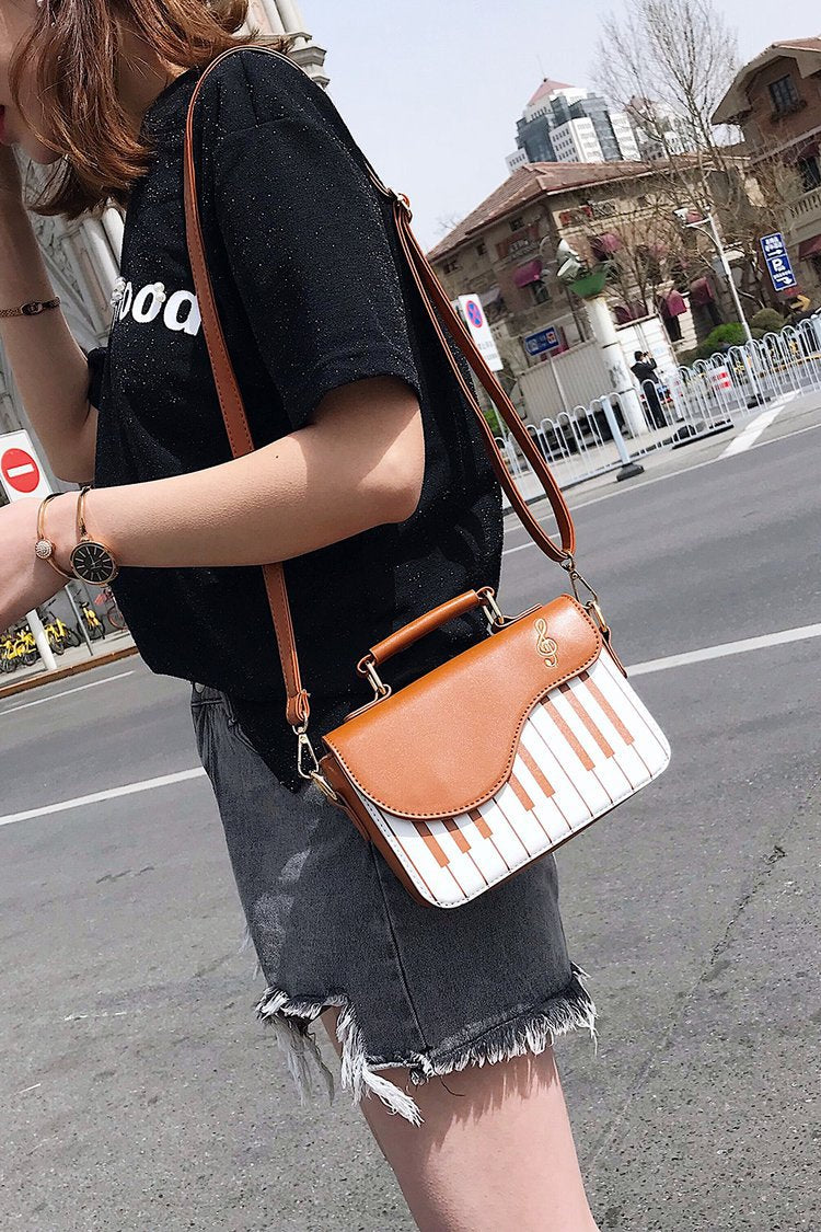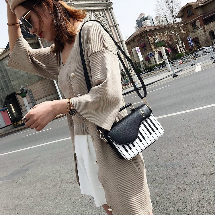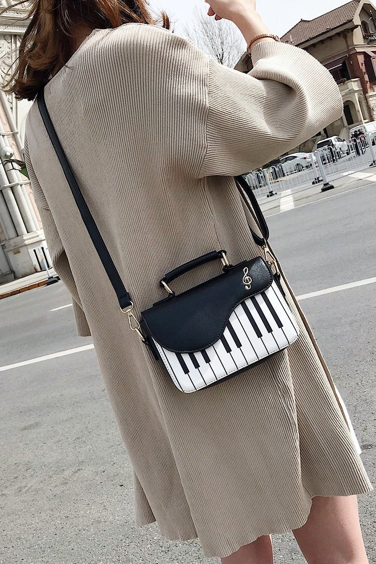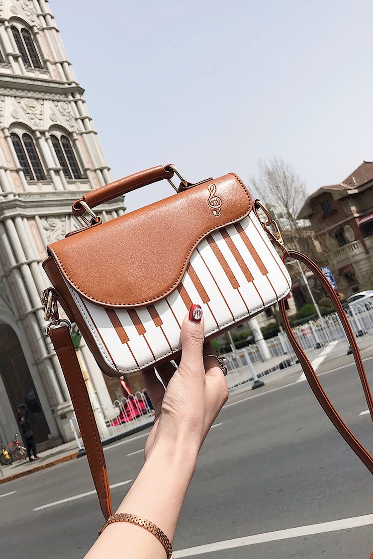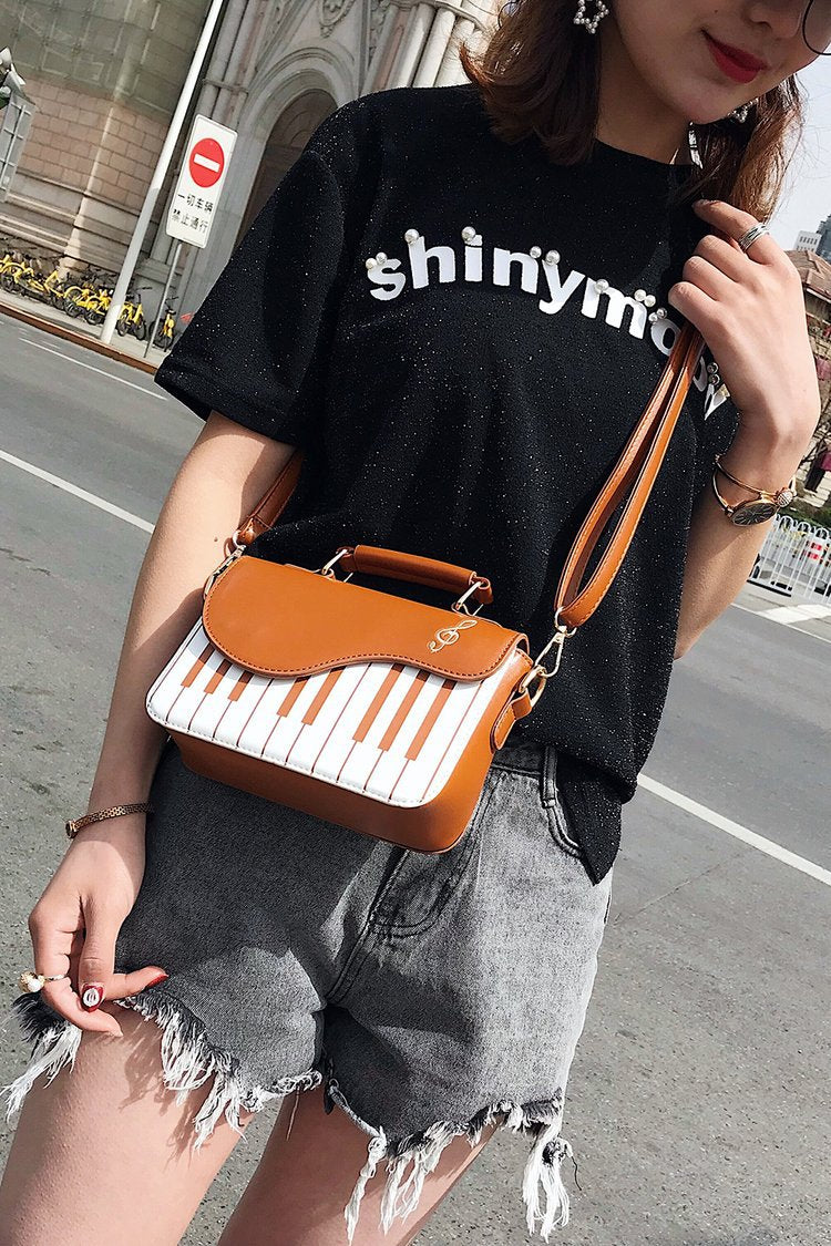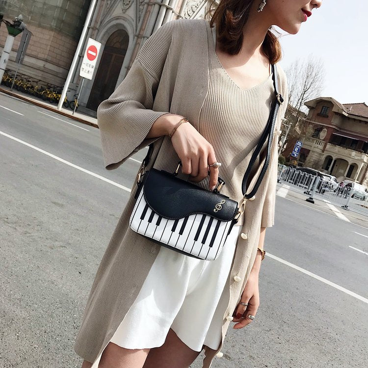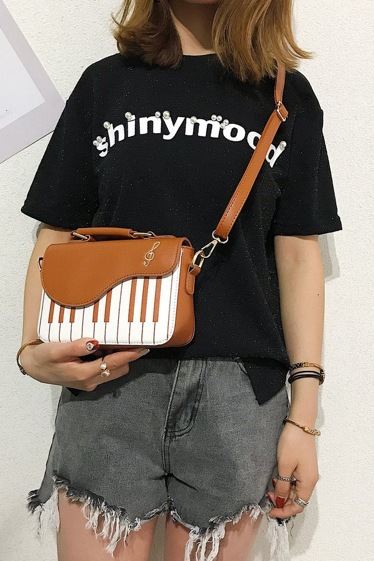2022 Spring and Summer Fashion Contrast Color Embroidery Small Square Bag Girl Sweet Personality Piano Note Small Shoulder Bag Handheld Women's Bag